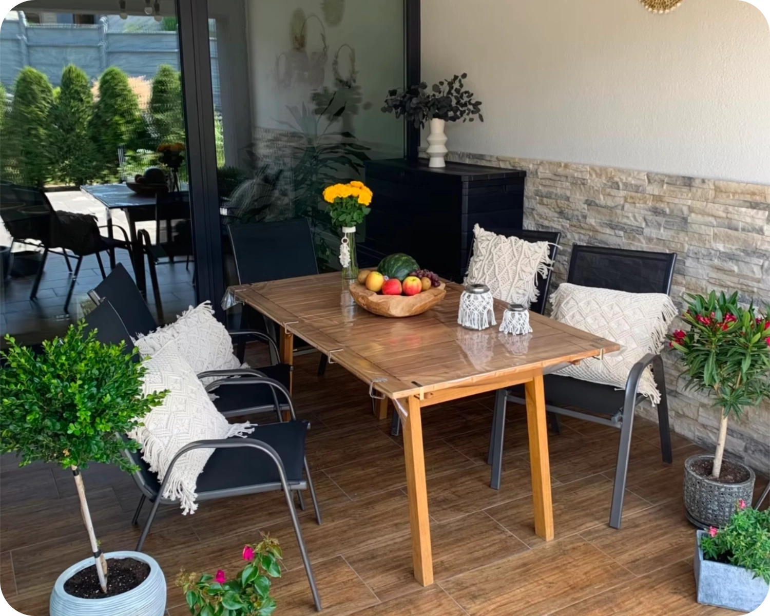 Überdachte Terrasse & freie Terrasse mit Sonnenliegen